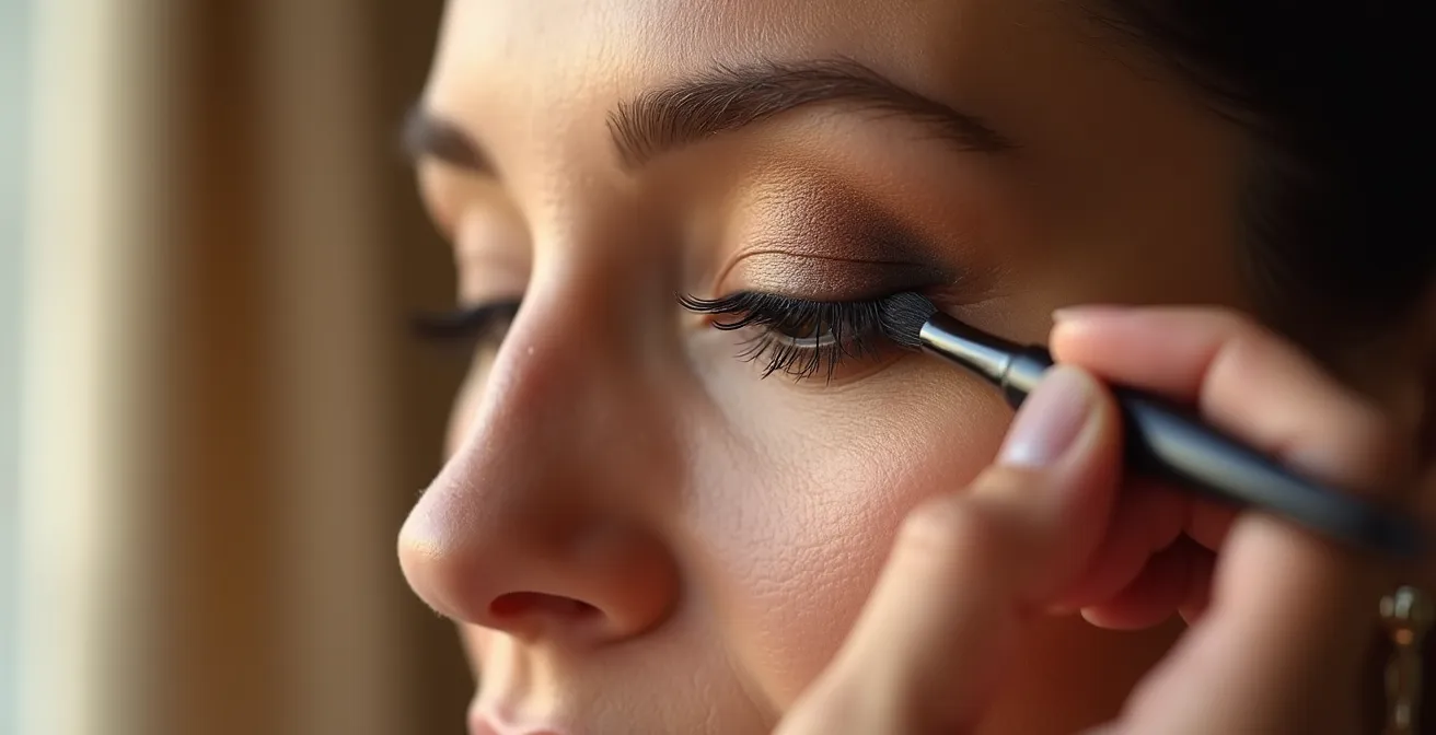 Este truco no es hacer trampa, es usar la inteligencia a tu favor. Te permite trabajar las sombras con más seguridad, concentrándote en el difuminado en lugar de en la precisión del borde. Es la forma más segura y rápida de conseguir esa forma de «ojo de gata» que tanto favorece y eleva la mirada, especialmente en párpados que tienden a la caída.